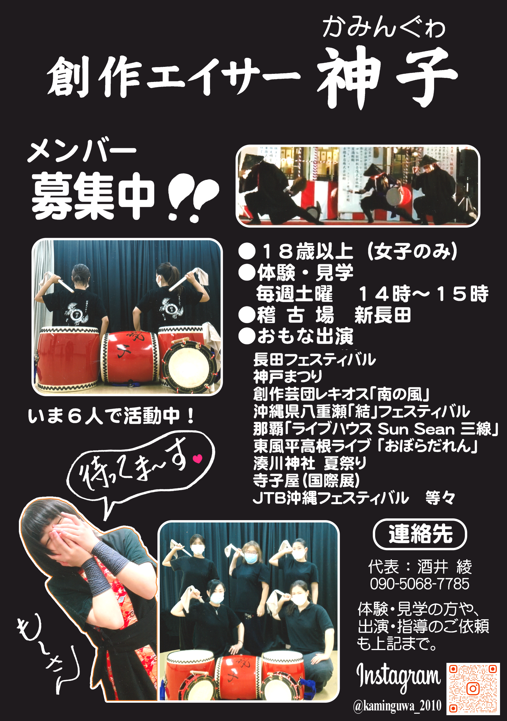 2022年、コロナ禍が続いて出演機会もなく「ちょうでーず」の活動はまったくできませんでした。創作エイサー「神子」のみなさんには「世界大会祝勝会」のオープニング・セレモニーで演舞していただくことができました。今年も神子の綾先生と相談しながら、コラボ出演行事が決まれば、それにむけて練習を再開できると思いますので「ちょうでーず」常勤・非常勤メンバーのみなさん、コツコツ気長に自主トレを続けましょうね! 日程表では「ちょうでーず」の稽古予定を「◎」印、コラボ出演予定を「★」印、「神子」のみなさんの出演日程を「☆」印で示しています。