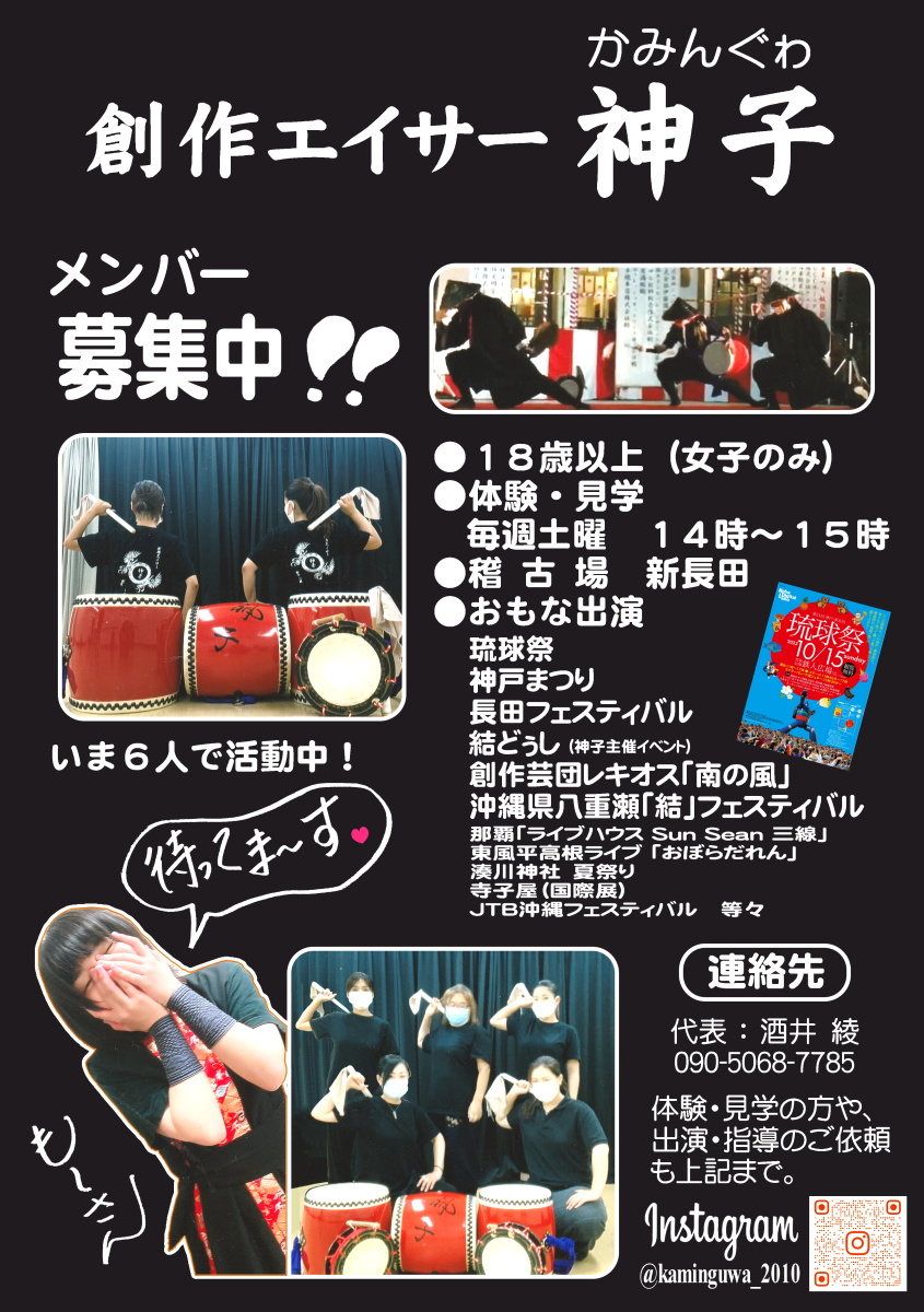創作エイサー「神子」のみなさんの出演機会は今年もたくさん予定されています。「ちょうでーず」コラボ出演の行事があれば、それにむけて練習を再開できると思いますので「ちょうでーず」常勤・非常勤メンバーのみなさん、自主トレを続けましょうね! 日程表では「ちょうでーず」の稽古予定を「◎」印、コラボ出演予定を「★」印、「神子」のみなさんの出演日程を「☆」印で示しています。